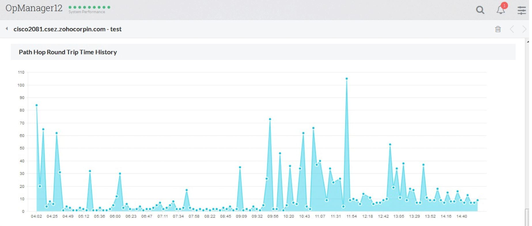 Z OpManager można tworzyć widoki biznesowe (mapy) do graficznej wizualizacji całej sieci WAN. Teraz można uzyskać pełną widoczność łączy WAN i śledzić przestoje do poziomu przeskoku. Poza twoją infrastrukturą wydajność WAN zależy w dużej mierze od dostawcy usług internetowych. OpManager zapewnia wgląd w wydajność łączy WAN przez wyświetlanie latencji dla kolejnych przeskoków dzięki czemu można określić czy problem wynika z twojej infrastruktury czy z winy ISP.